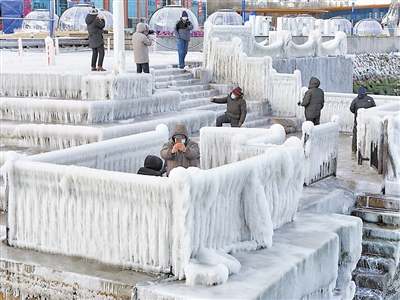 寒潮过境海滨现冰凌