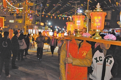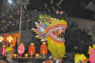今报讯 (全媒体见习记者 黄冰倩 文/图)2月7日晚,夜幕初垂,灯影闪烁。鲤城街道金井社区锣鼓声响,鞭炮齐鸣,千米长的灯龙蜿蜒而出,龙头灯、板凳灯次第点亮,如星河坠落人间。