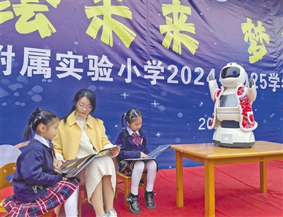 图①:2月13日,莆田学院附属实验小学以“智绘未来 梦启新程”为主题,举行开学典礼。活动中,同学们在与无人机、机器人的亲密互动中,感受着科技带来的便捷与乐趣。