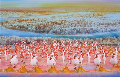 2月14日,第九届亚洲冬季运动会闭幕式在哈尔滨举行。图为演员在闭幕式上表演。
