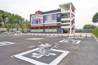 记者在现场看到,运营中心主体为二层钢结构建筑,楼顶是无人机起降场,二层为无人机指挥调度中心、智慧城市服务中心所在地,一层则是快递速运智慧网点。此外,园区内还规划了无人机起降区、无人车接驳区、车辆接驳区停放区等功能区域。