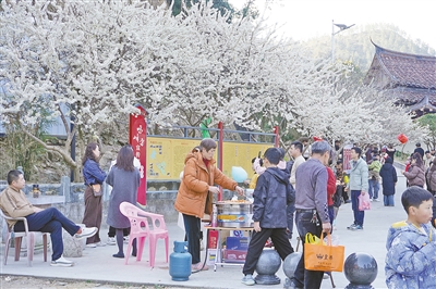 漫步鸣峰寺,放眼望去,成片李花花团锦簇,竞相绽放,以洁白素雅之姿,装点着这片古老的土地。