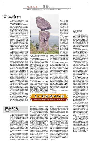 菜溪岩的景色,四季常新,变幻无穷。春天,山花烂漫,争奇斗艳;夏天,层峦染碧,万壑摇青;秋天,硕果累累,红叶满山;冬天,红梅怒放,苍松添翠。初春时,菜溪岩的山上生长着数不清的蘑菇,洁白的如碧玉,橙黄的象琥珀。它们象顽皮的小孩,撑着小伞,徜徉在溪边谷底,把群山点綴的分外妖娆。
