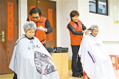 活动中,各部门志愿者还通力协作,有的给老人送上慰问品,有的为老人剪指甲,有的陪老人拉家常。同时,爱心理发师为老人义剪,电力义修志愿者检查院内用电安全。