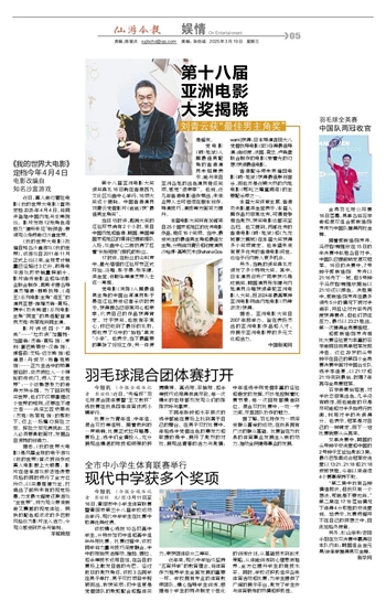 第十八届亚洲电影大奖颁奖典礼16日晚在香港西九文化区戏曲中心举行,16项大奖逐个揭晓。中国香港演员刘青云凭借影片《爸爸》获“最佳男主角奖”。