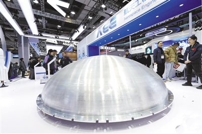 3月17日,第十一届亚洲3D打印、增材制造展览会(简称TCT亚洲展)在国家会展中心(上海)开幕。本届展会为期3天,展览面积超过40000平方米。图为在第十一届亚洲3D打印、增材制造展览会上展示的3D打印的运载火箭燃料贮箱箱底。 据新华社