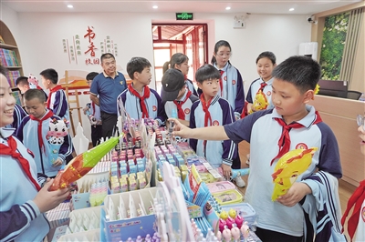 城西中心小学校园书屋选址于上世纪50年代建筑,在保留历史风貌基础上进行翻新。150平方米的空间里,藏书近3500册,涵盖党政读物、文化教育、国学经典、科学技术等多个类别,加上文创产品总规模达5000册(件)。书屋科学规划了阅读区、活动区、文创区等功能分区,将成为集阅读分享、学术交流、学习休憩于一体的多功能文化空间。