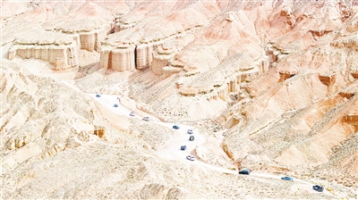 外星谷星际主题地质公园位于张掖市肃南裕固族自治县境内,是张掖国家地质公园的重要组成部分,园内富集了冰川、雪山、草原、丹霞、丘陵、戈壁等众多地貌景观。图为4月20日,来自全国各地近百辆自驾游车辆在甘肃省张掖外星谷星际主题地质公园畅游。 人民网