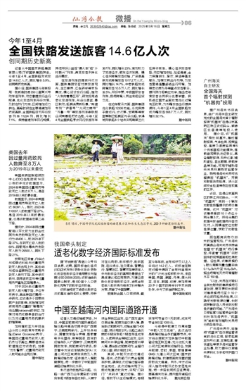 记者从中国国家铁路集团有限公司(下称国铁集团)获悉,今年1至4月,全国铁路发送旅客14.6亿人次、同比增长5.9%,创同期历史新高。