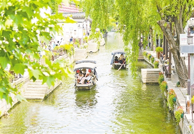 初夏时节,浙江省湖州市南浔区南浔古镇景区内,自然风光美不胜收。游客们漫步于古镇街巷,或驻足游览百年古桥,或泛舟体验传统摇橹船,在移步换景间深度领略江南水乡的独特风情。人民网