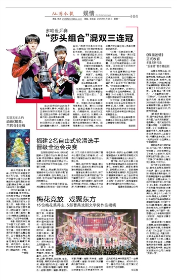 在24日进行的2025年多哈世乒赛比赛中,中国队组合王楚钦/孙颖莎实现混双三连冠,巴西名将雨果·卡尔德拉诺首次闯入世乒赛男单决赛。