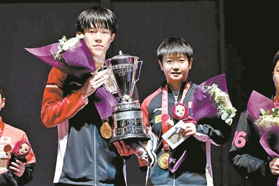 当天的混双决赛中,王楚钦/孙颖莎以3:1战胜日本组合吉村真晴/大藤沙月。孙颖莎赛后说:“即使对手是双右手组合,也展现出了极强的默契和战术威胁。我们彼此信任,在比分胶着时都很坚定,这也是我们能够(取得)三连冠的关键。”