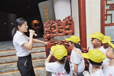 在博物馆的雕刻车间里,几位经验丰富的工匠手持刻刀,在木材上娴熟游走,原本普通的木料在巧手下逐渐显露出精美的花纹。孩子们围在一旁,屏息凝神地观察着,眼神中充满了敬佩与好奇。