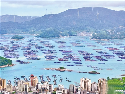 8月13日,福建省连江县的海上牧场蔚为壮观,养殖网箱在碧波上绵延成片,构成一幅壮阔而富有生机的海上画卷。连江县拥有得天独厚的海洋资源,全县海域面积3000多平方公里,有“中国鲍鱼之乡”“中国海带之乡”的美誉。 据中新社