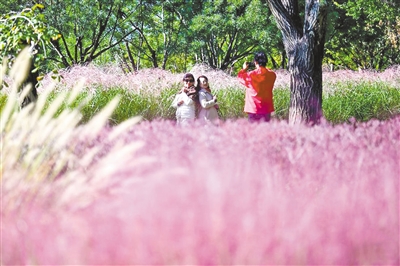 近日,位于天津市滨海新区的泰达植物资源库芊卉园的观赏草迎来最佳观赏期,狼尾草、粉黛乱子草等色彩斑斓,摇曳生姿,吸引不少游客游览拍照。占地约26万平方米的泰达植物资源库曾是一片盐碱荒地,经过十余年建设,现已成为集科研、科普、示范、观赏于一体的植物林草种质资源库。图为10月20日,游客在天津市滨海新区泰达植物资源库芊卉园内游览拍照。