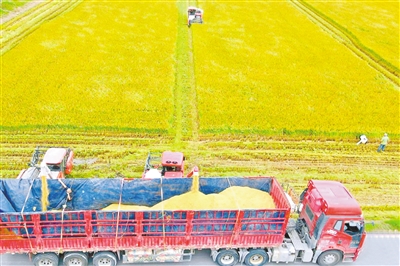 10月16日,在江苏省如皋市城北街道平园池村,农机手将收获的水稻装入运粮车。农业农村部最新农情调度显示,2025年全国秋粮收获近七成。 新华网