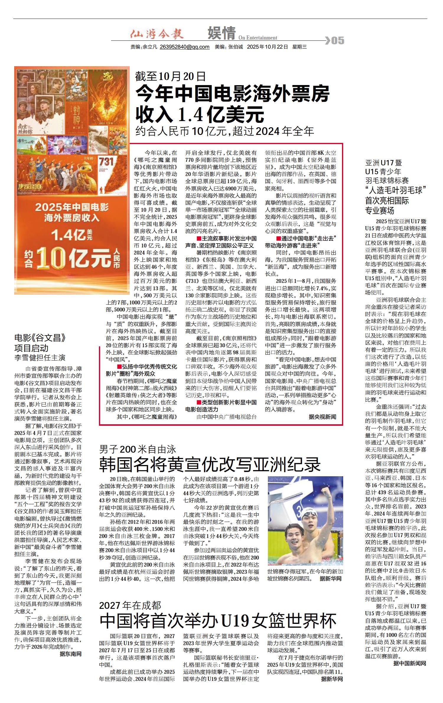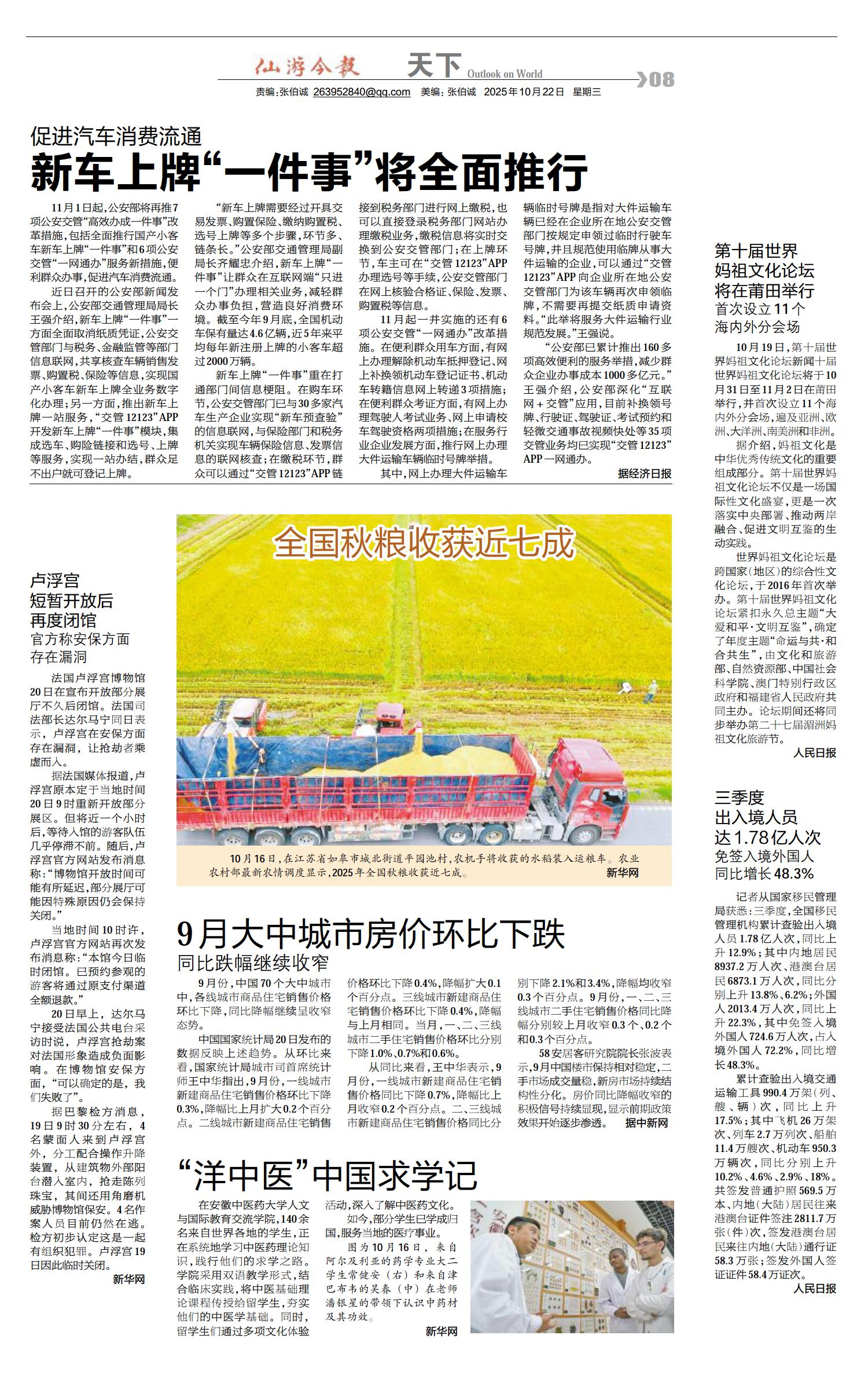 01 导读 02 今闻 03 锐题 04 仙梦 05 娱情 06 微播 07 养生 08 天下