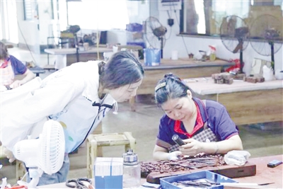 随后,他们还前往榜头镇工艺品一条街,穿梭于不同风格的作坊,仔细雕刻、打磨等工艺流程,对比传统工坊与现代工坊的工艺模式差异。通过沉浸式体验,让队员们对传统工艺制作有了更立体的认识,也为探索非遗技艺的创新发展积累了宝贵的经验。