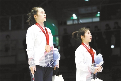 图为罗诗芳(左)和裴鑫依在颁奖仪式上。