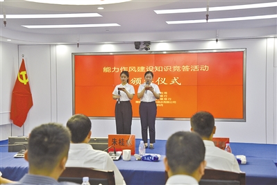 今报讯 (今报记者 李冰 文/图)为深入贯彻落实县委县政府“能力作风建设”三年行动工作部署要求和县委“1299”工作抓手,进一步激发广大干部职工积极性和主动性,营造“比学赶超”的浓厚氛围,5月10日,县水利局、仙游农商银行、仙游瑞狮村镇银行、仙游城乡供水有限公司联合开展能力作风建设知识竞答活动。县委常委张志东出席。