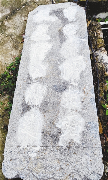 近日,文史研究者在赖店镇新周村找到了一块古代神道碑。该神道碑高250厘米、底部宽100厘米、上部宽90厘米、底部厚20厘米、上部厚10厘米,石碑正面和侧面都呈梯形几何形状。这种造型的神道碑既外形美观,又减轻了石碑的整体重量,设计巧妙富有宋代美学韵味,这是目前为止首次发现此类风格的仙游古代神道碑。石碑底部雕刻有精美的缠花波浪纹饰,纹饰下带有榫头,宽52厘米、长40厘米、厚23厘米。石碑上刻“有宋循阳史君大夫傅公神道”几个大字。