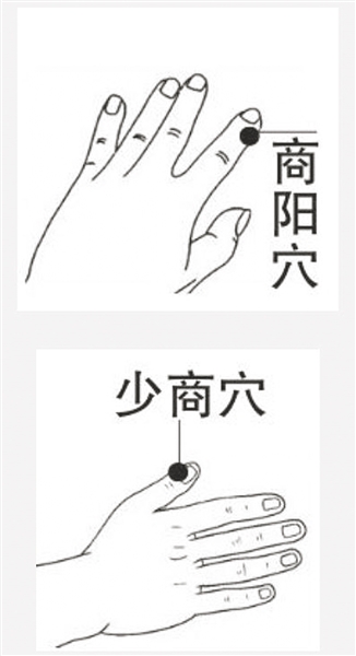 专家答:夏季天气燥热,如果平时体内有火,加上饮食辛辣、熬夜饮酒、长期待在空调房等,就会导致火气上延,灼烧咽喉。如果咽喉肿痛的情况比较严重,可用指甲掐按少商穴(大拇指末节桡侧,距指甲角0.1寸)、商阳穴(食指末节桡侧,距指甲角0.1寸),持续2—3分钟即可。