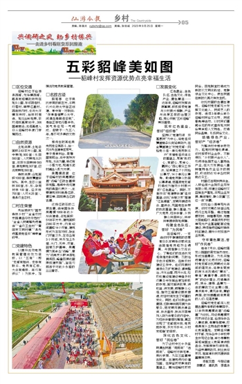 红色堡垒、金色队伍、古色文化、绿色产业、青色廉洁……近年来,貂峰村发挥资源禀赋,积极探索党建与乡村振兴相融、产业与资源互促的治理之路,用心织就“五彩貂峰”美好画卷。
