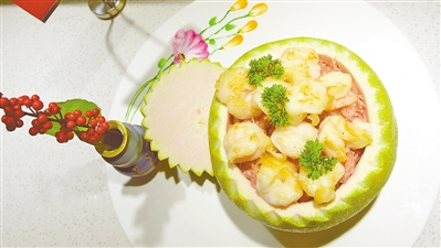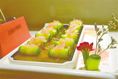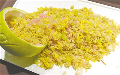 拔丝脆皮柚子、蜜柚糖心果冻、一品柚肉炒饭、柚皮养生大拌菜、鲜虾柚子沙拉、柚皮烧辽参、红柚汁鱼子酱青瓜、百花澳带柚子肉、蟹黄烩柚皮。九道菜,荤素搭配,清香美味。