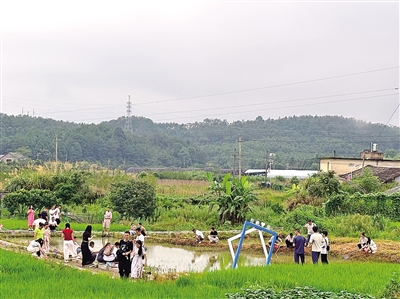 为期三天的联谊,主办方精心谋划,节目丰富多彩。男女青年一同前往游洋镇兴山村,参观中共上宫支部旧址,通过实地参观与聆听讲解,重温革命先辈波澜壮阔的奋斗历程,在思想上接受一场红色洗礼。此外,还前往钟山镇梅洋村兰亭别院,体验传统文化之旅;在稻田打卡、钓小龙虾(如图),体验田园风情魅力。