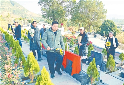 上图:冬至后,我县迎来冬至祭扫高峰。随着文明祭扫理念渐入人心,越来越多的市民选择鲜花祭奠等文明方式。