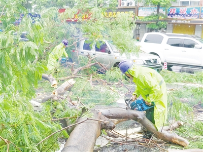 接警后,县城市服务集团立即启动应急预案,应急抢险人员赶往现场,使用电锯对倒伏树木进行分段切割后清运,涉事道路已恢复通行。